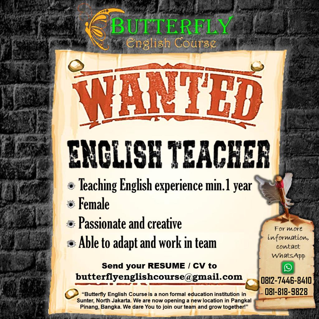 info Loker ENGLISH TEACHER-Butterfly English Course-Penempatan Pangkalpinang