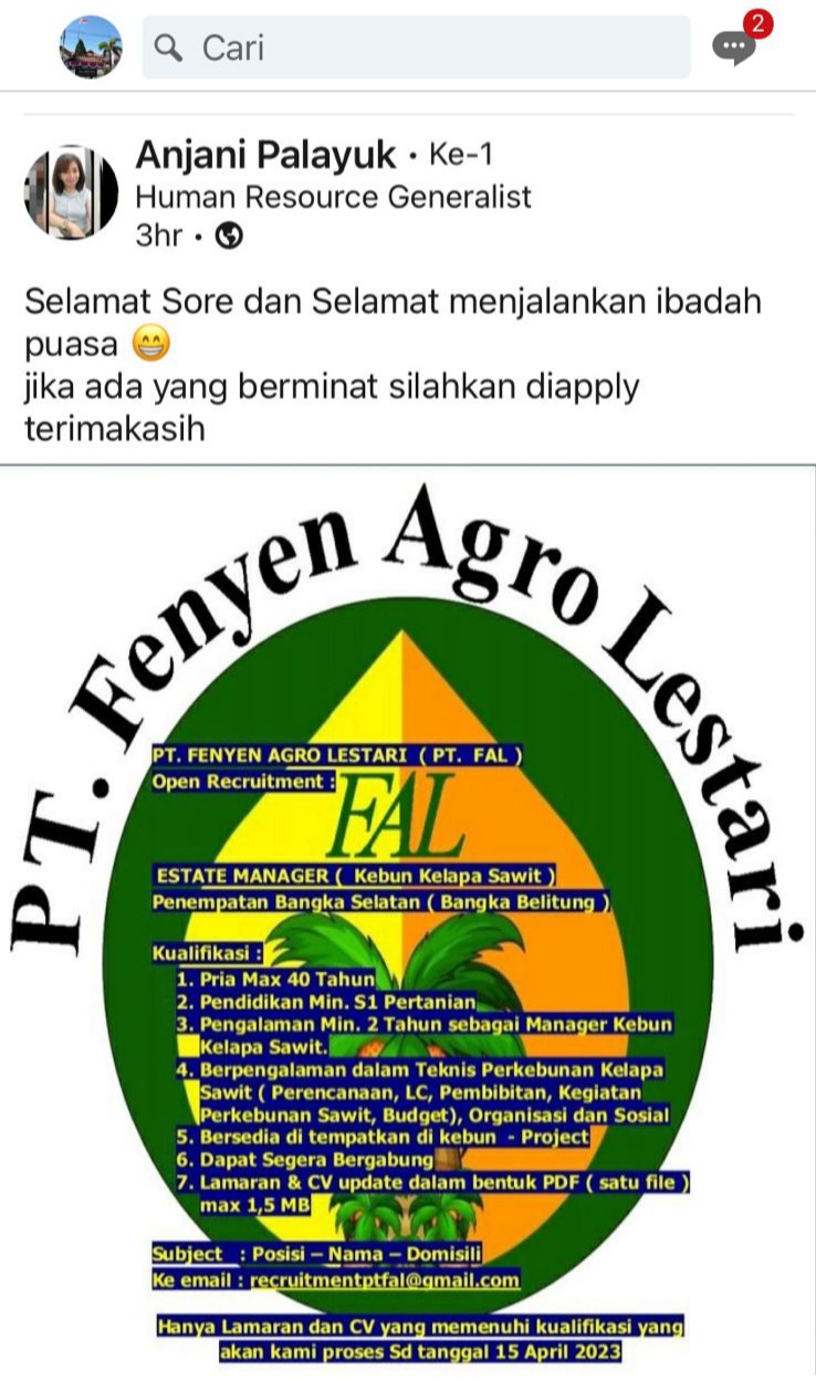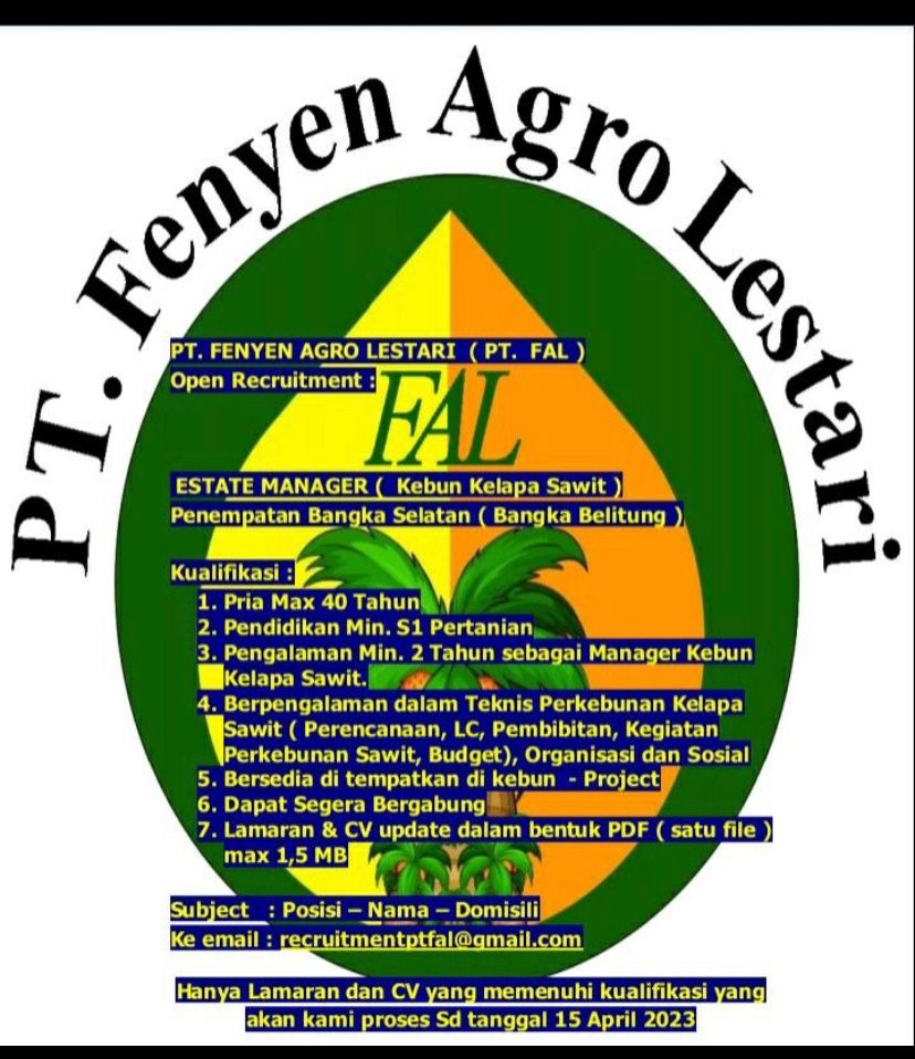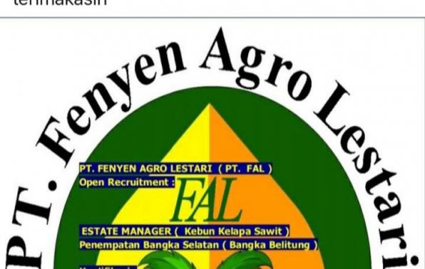 info Loker ESTATE MANAGER-PT Fenyen Agro Lestari-Bangka Selatan