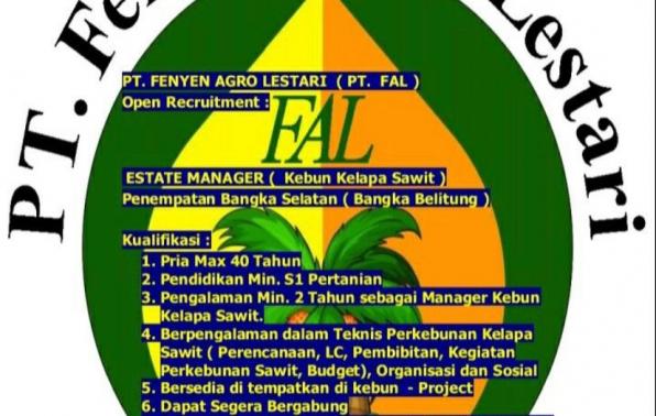 ESTATE MANAGER-PT Fenyen Agro Lestari-Bangka Selatan