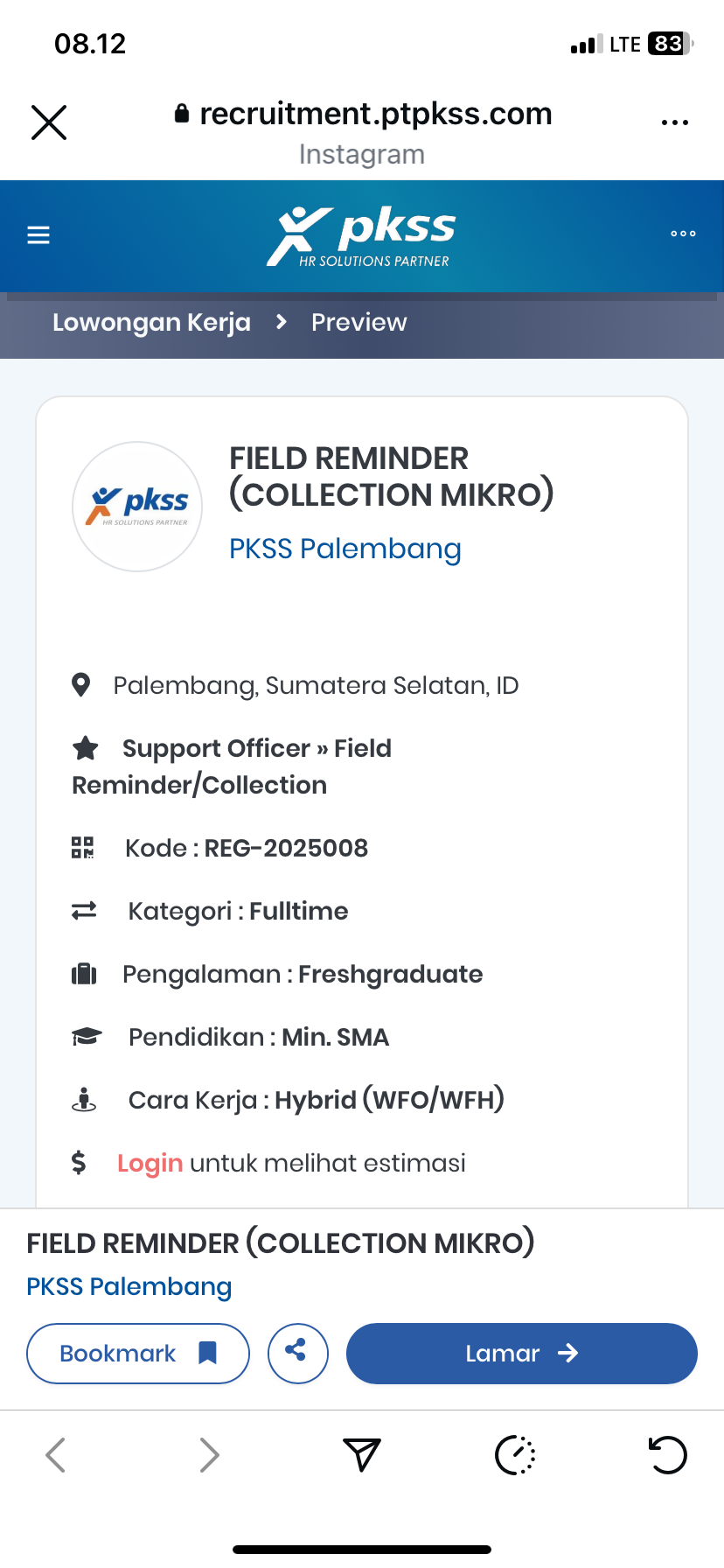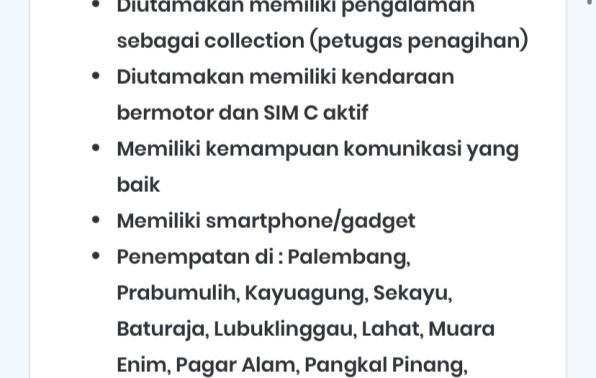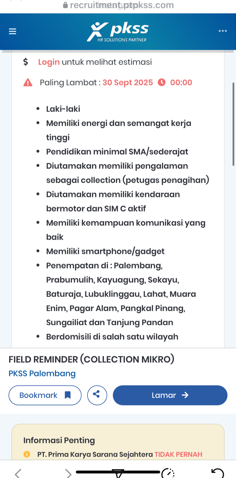 Link Pendafataran : https://recruitment.ptpkss.com/id/co/pkss-palembang/reg-2025008-field-reminder-collection-mikro