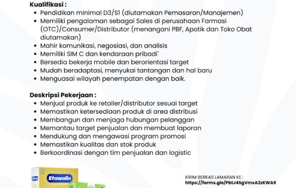 PT SERAYU SUMBER REJEKI Buka info Loker posisiĀ Field Sales Executive.