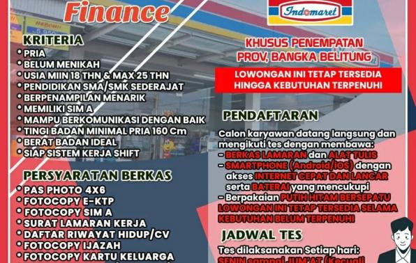 info Loker FINANCE -Indomaret Bangka