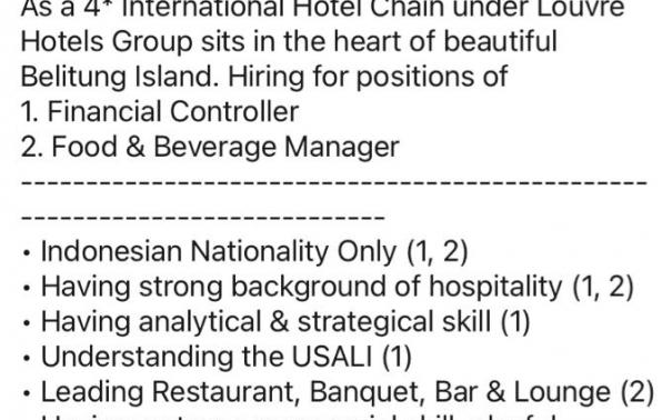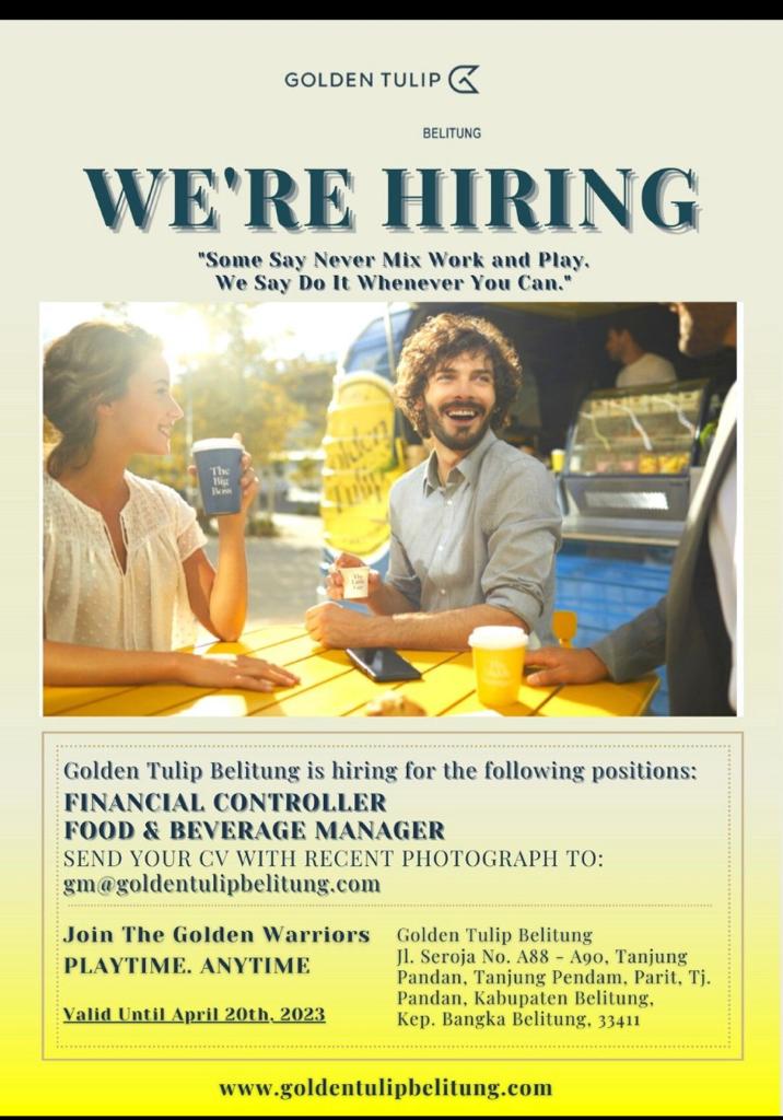 info Loker FINANCIAL CONTROLLER & FOOD-BEVERAGE-Golden Tulip Belitung