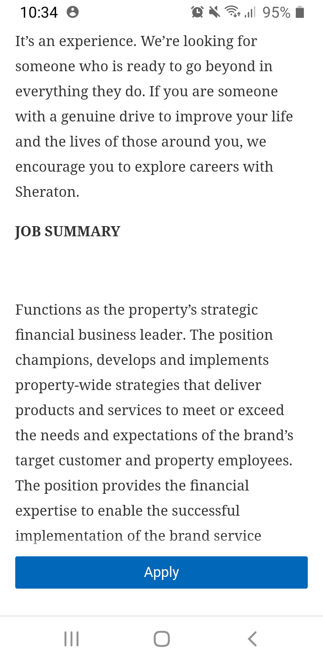 At Sheraton, we go above and beyond in everything we do. We are inspired by our guests and one another – and are driven to make things better. We love what we do, and we give it all we’ve got – on property and off. When guests stay with us, it’s not just a room with a bed that they’re buying. It’s an experience. We’re looking for someone who is ready to go beyond in everything they do. If you are someone with a genuine drive to improve your life and the lives of those around you, we encourage you to explore careers with Sheraton.