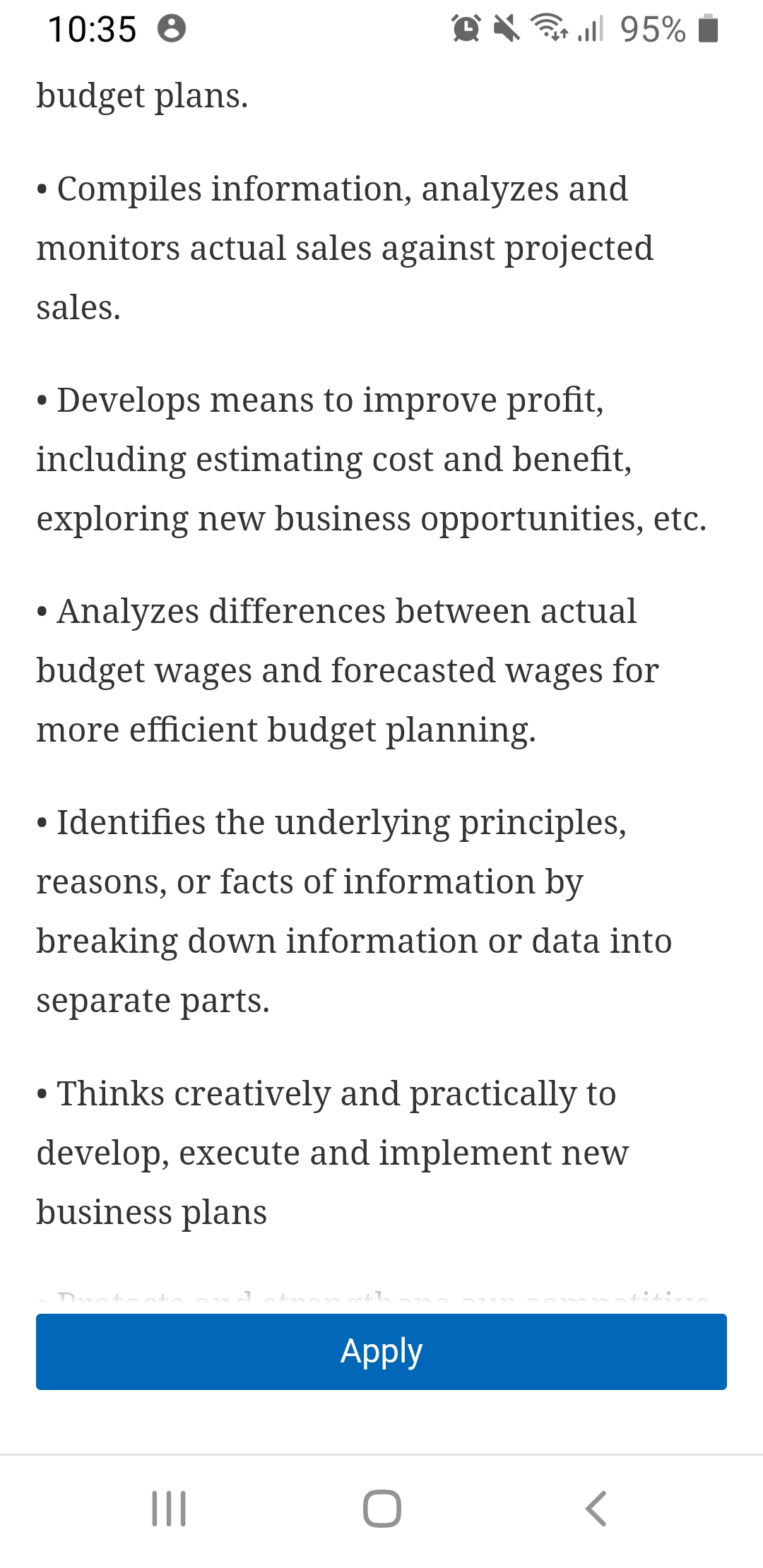 • Analyzes information, forecasts sales against expenses and creates annual budget plans.