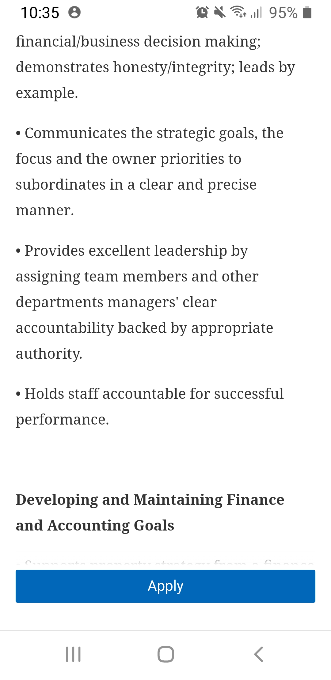 Functions as the property’s strategic financial business leader. The position champions, develops and implements property-wide strategies that deliver products and services to meet or exceed the needs and expectations of the brand’s target customer and property employees. The position provides the financial expertise to enable the successful implementation of the brand service strategy and brand initiatives while maximizing the return on investment. In addition, creates and executes a business plan that is aligned with the property and brand’s business strategy and focuses on the execution of financial and accounting activities and the delivery of desirable financial results.