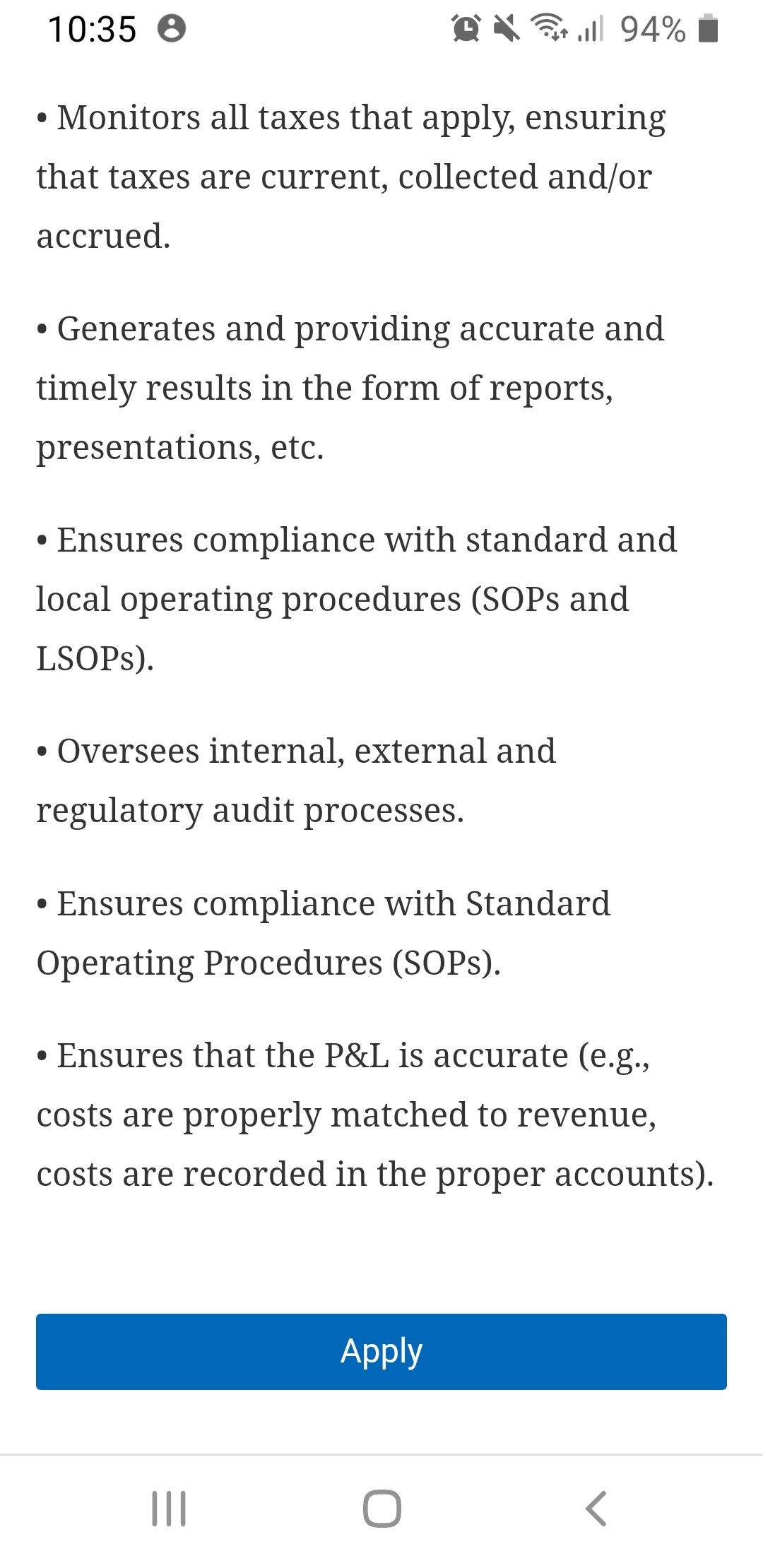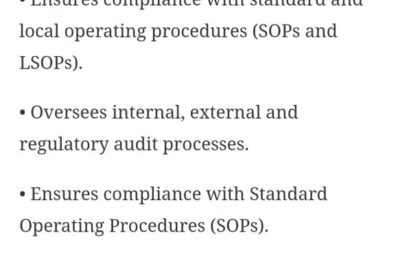 • Ensures compliance with Standard Operating Procedures (SOPs).