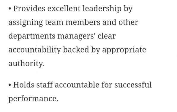 • Provides excellent leadership by assigning team members and other departments managers' clear accountability backed by appropriate authority.