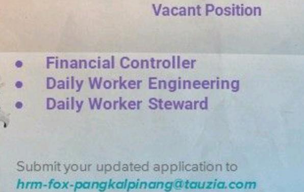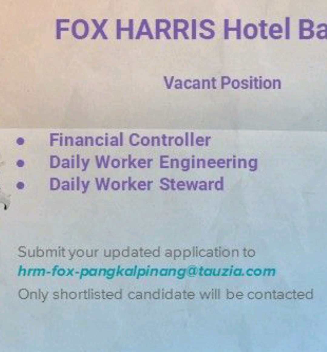 Financial Controller,Daily Worker Engineer & DW Stewart @Fox Harris Hotel Pangkalpinang
