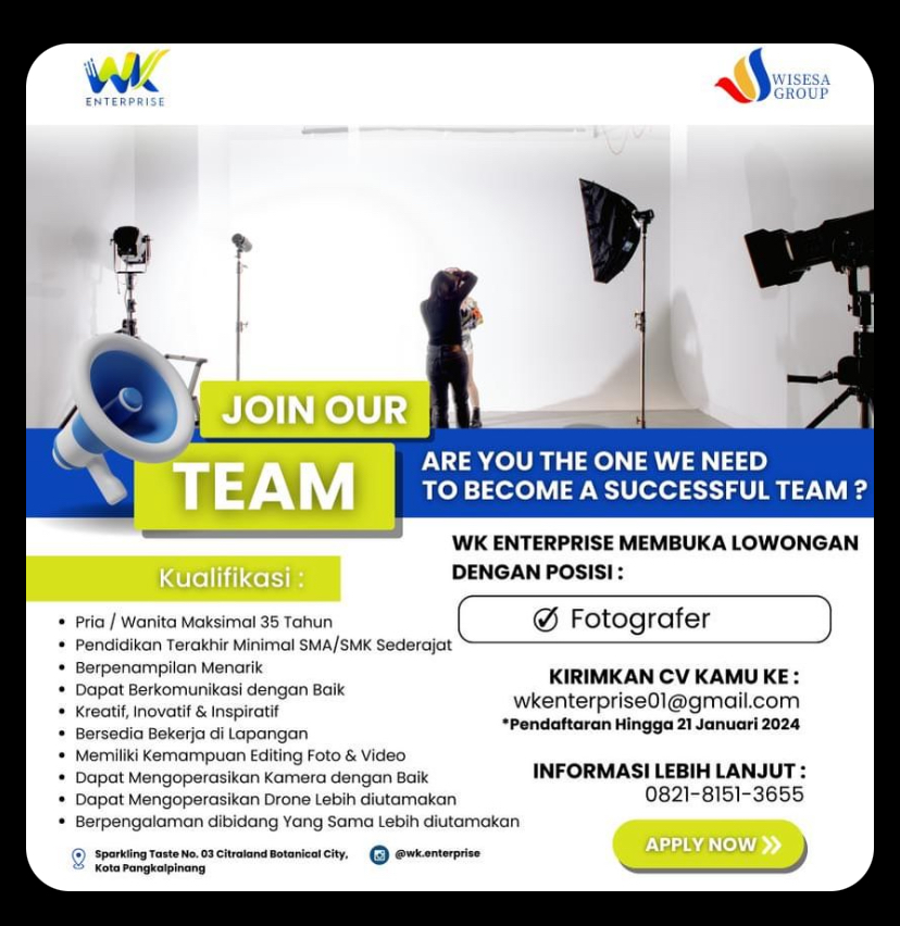 Even organizer-WK Interprise membuka kesempatan untuk posisi FOTOGRAFER penempatan di Pulau Bangka