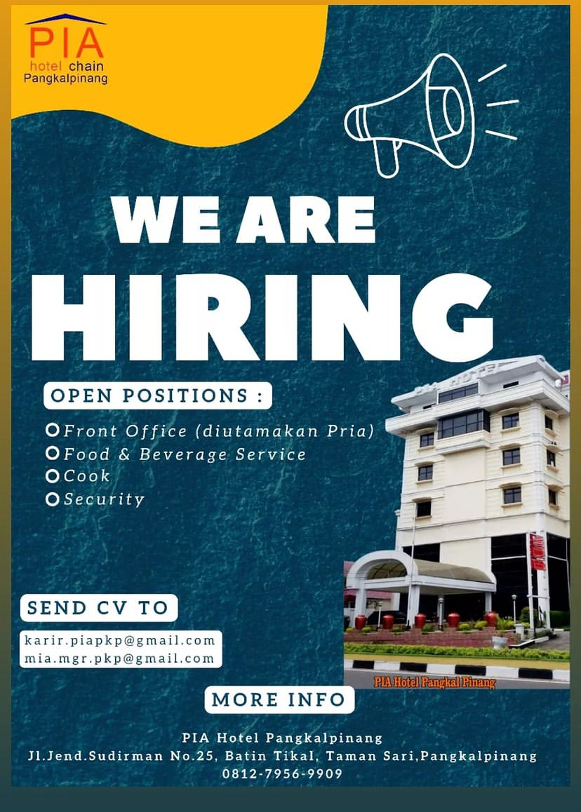 PIA Hotel Pangkalpinang membuka kesempatan kerja untuk posisi: