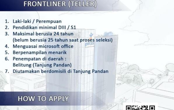 PT PRIMA KARYA SEJAHTERA/PKSS mencari kandidat untuk menempati posisi sebagai FRONTLINER/TELLER penempatan berlokasi di Tanjungpandan/Belitung