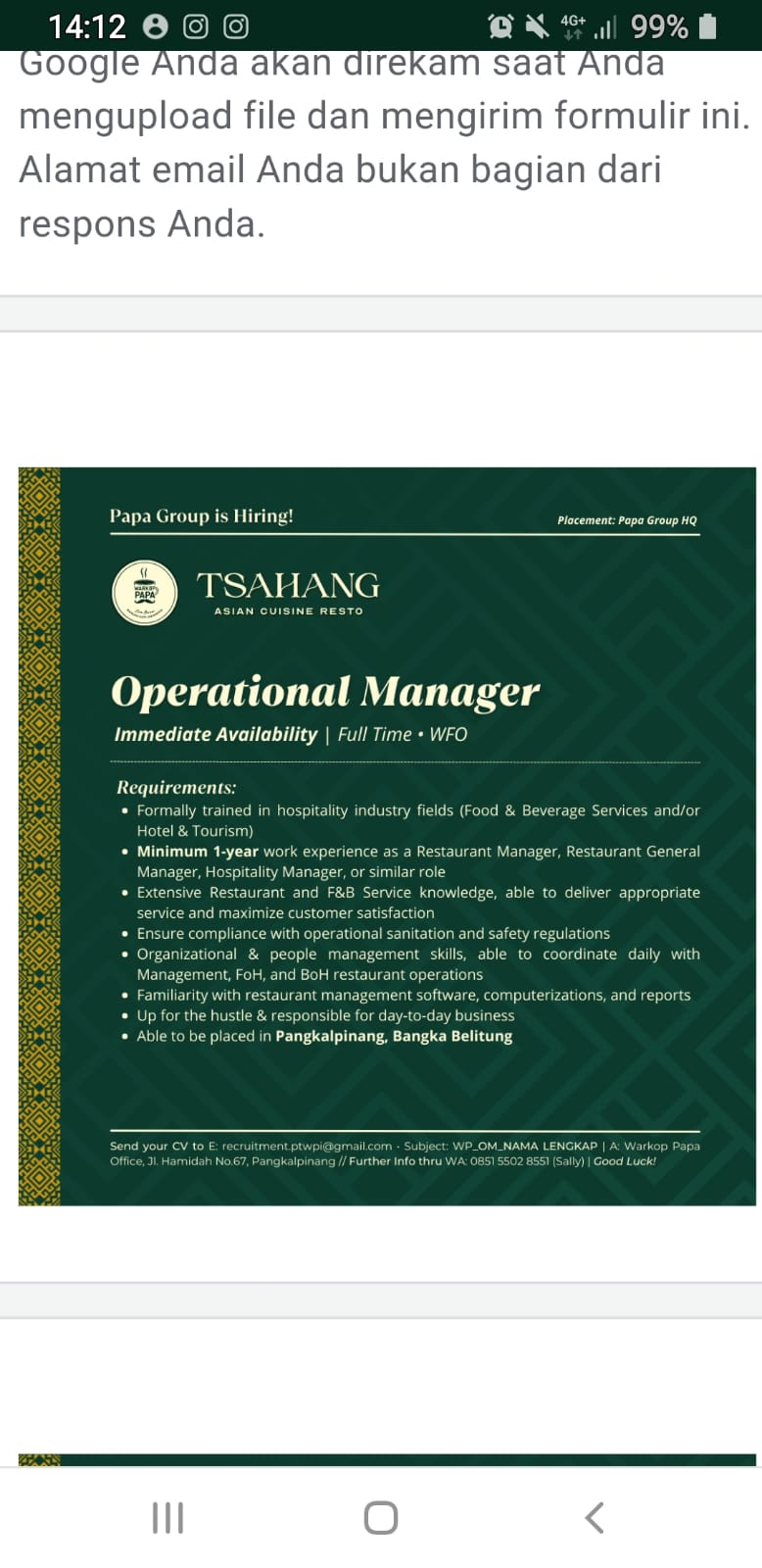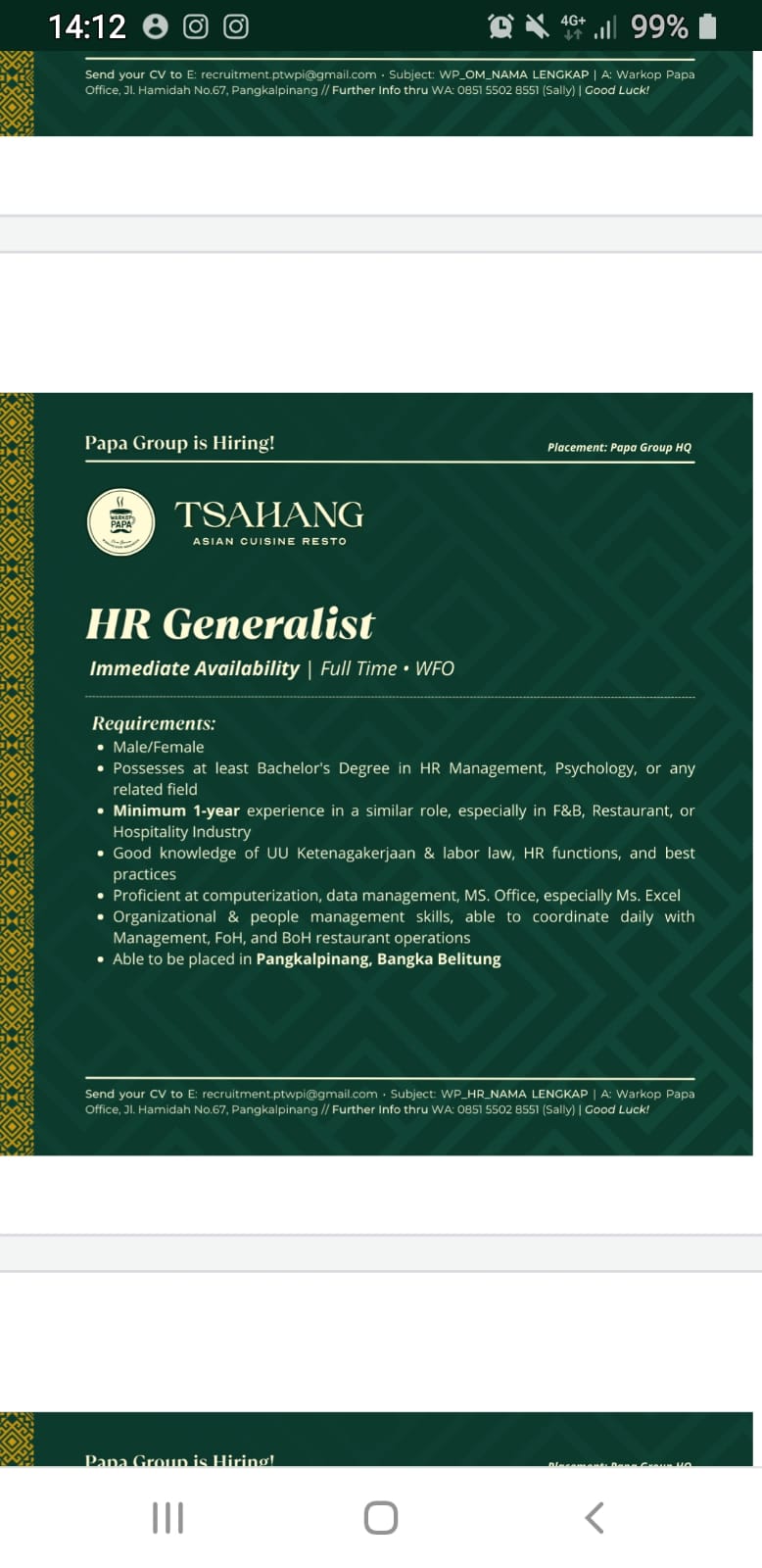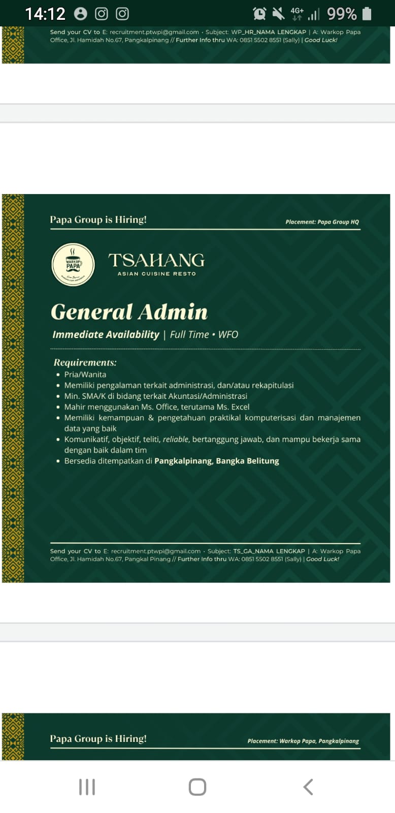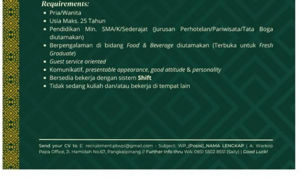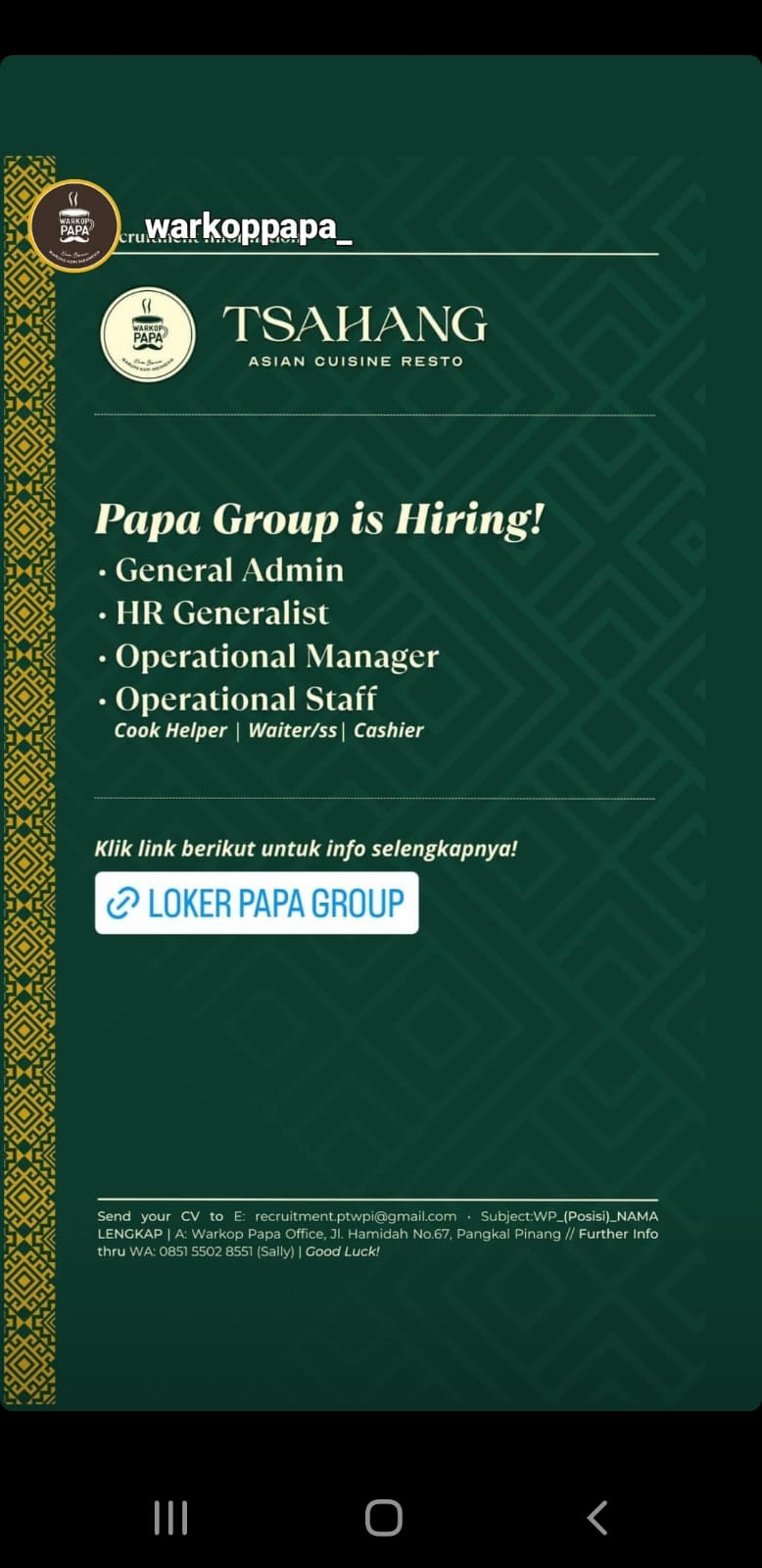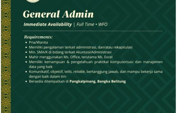 General Admin,HR General,Operational manager,Operational Staff-Warkoppapa-Pangkalpinang