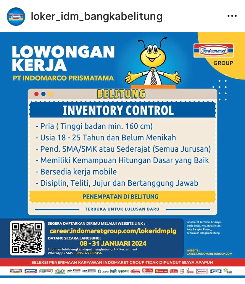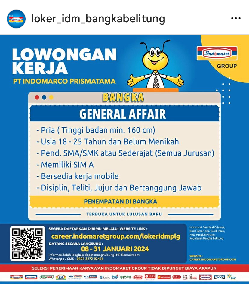 iG: loker idm Bangka Belitung, iG: loker indomaret Palembang