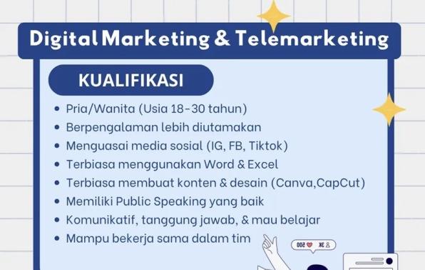 untuk posisi DIGITAL MARKETING & TELEMARKETING
