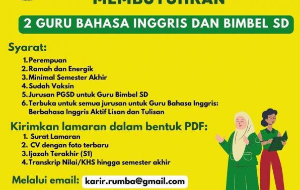 info Loker Guru Bahasa Inggris @ Bimbel SD-Rumba Pangkalpinang