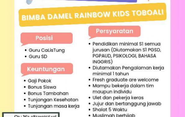 info Loker Guru Calistung& Guru SD-Bimbel Damel Rainbow Kids Toboali