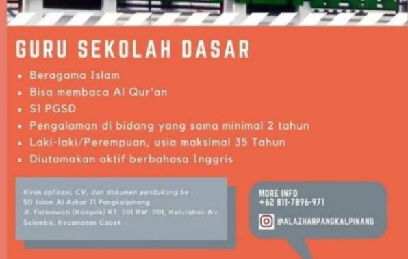 info loker Guru Sekolah Dasar Islam @Pangkalpinang