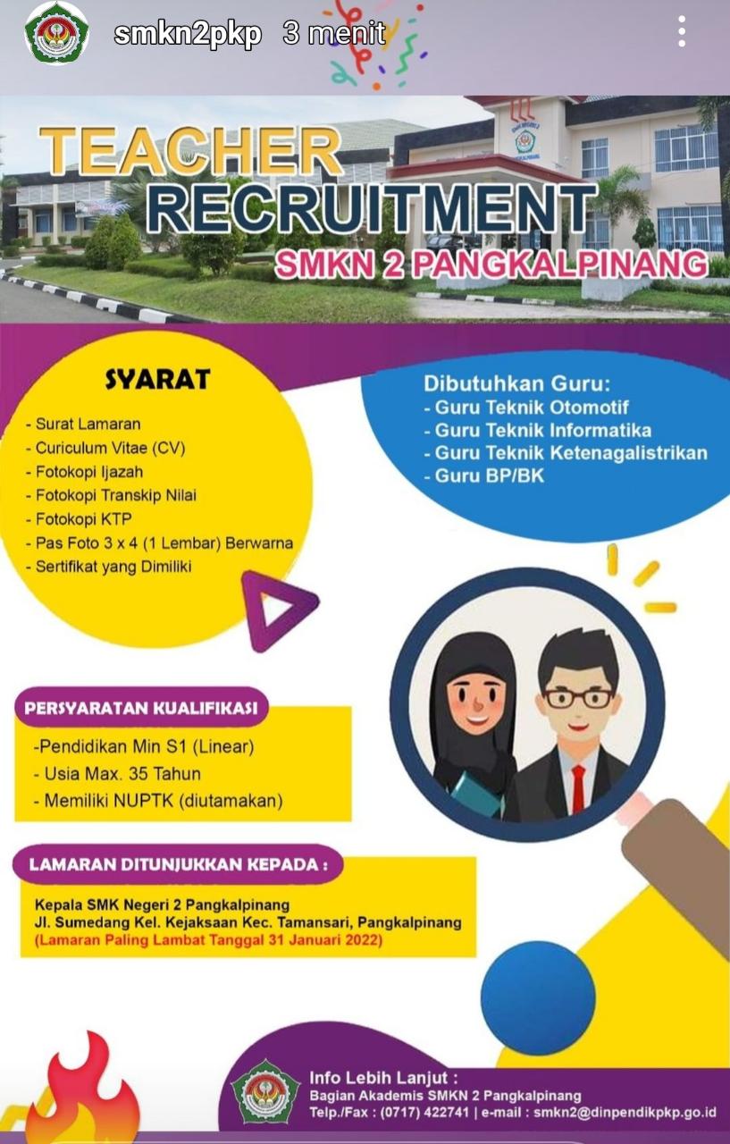 Guru teknik otomotif,informatika,ketenagalistrikan & Guru BP/BK @SMKN2-Pangkalpinang