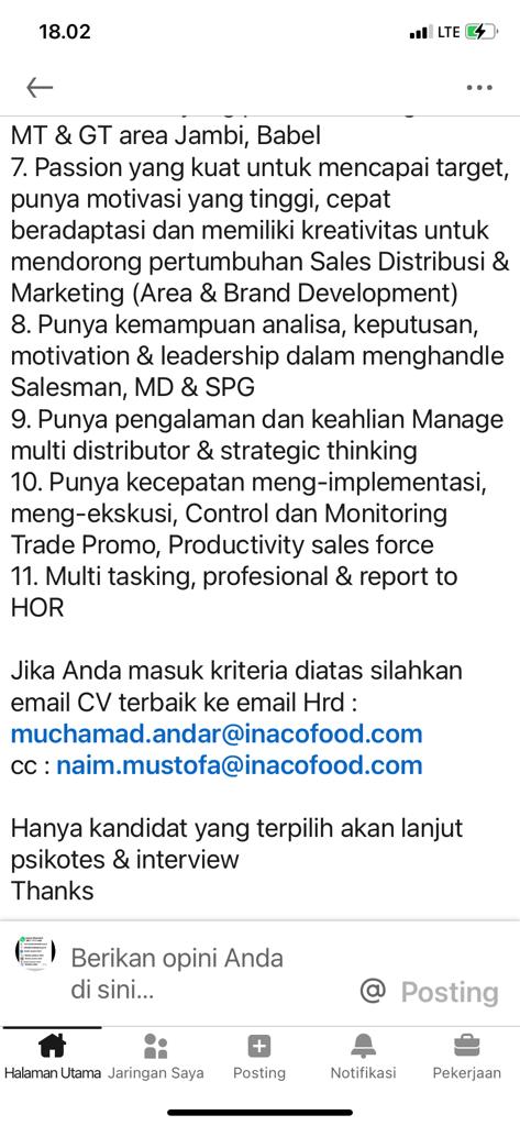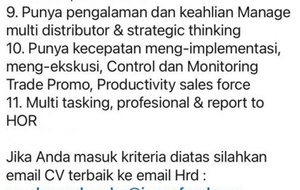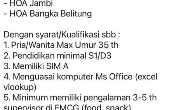 info Loker Head of Area @PT Niramas Utama-INACO-Bangka Belitung