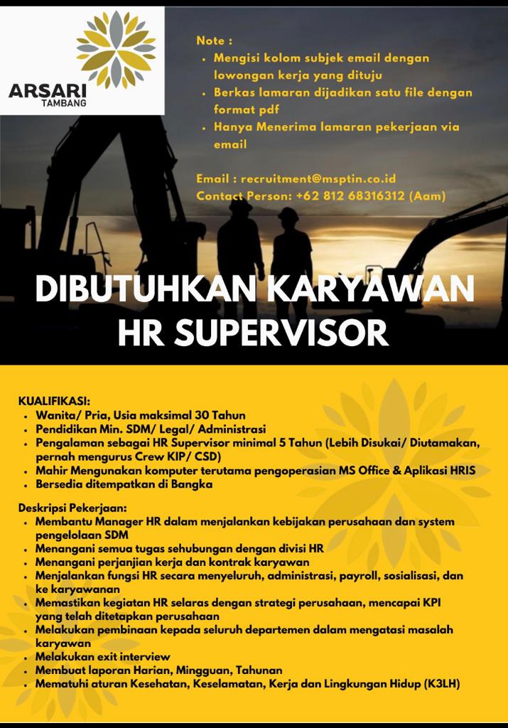 HR SUPERVISOR-Arsari Tambang Bangka