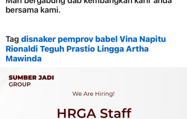 info Loker HRGA Staff-Sumber Jadi Group Bangka Belitung