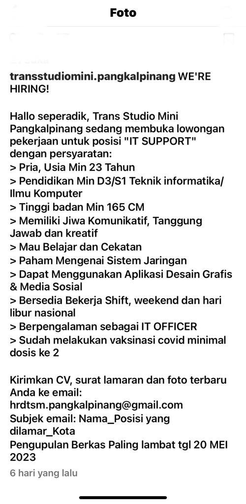 Pengumpulan Berkas Lamaran paling Lambat tanggal 20 Mei 2023