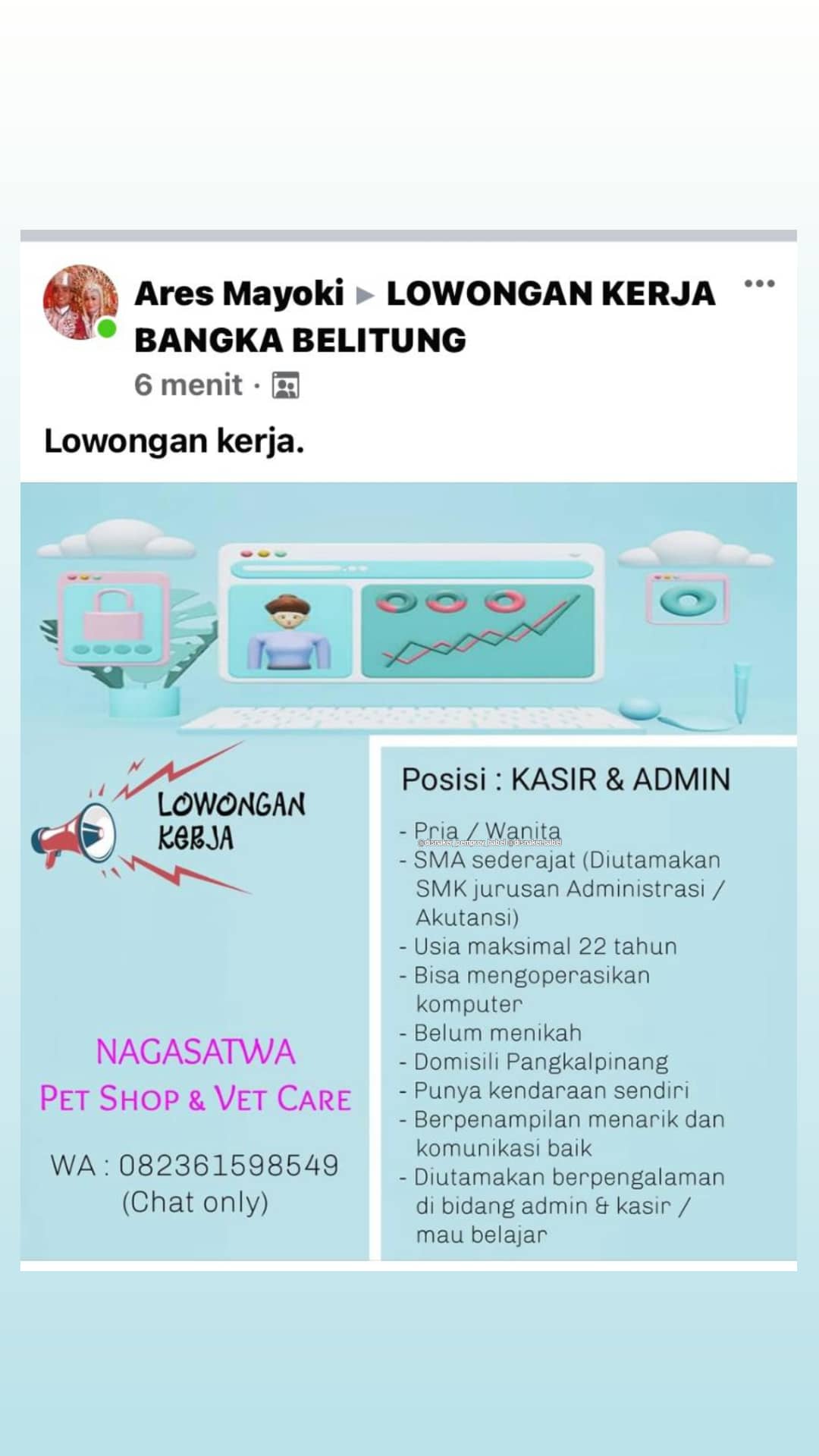 info Loker KASIR dan ADMIN @Pangkalpinang