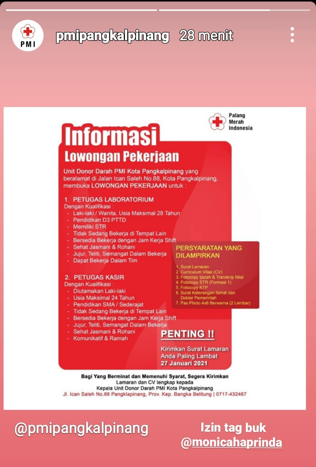 info Loker Kasir & Labor @PMI-Pangkalpinang
