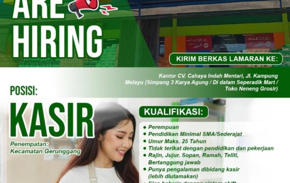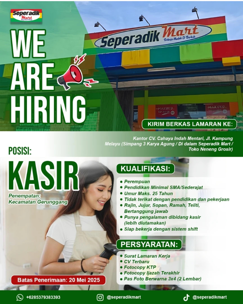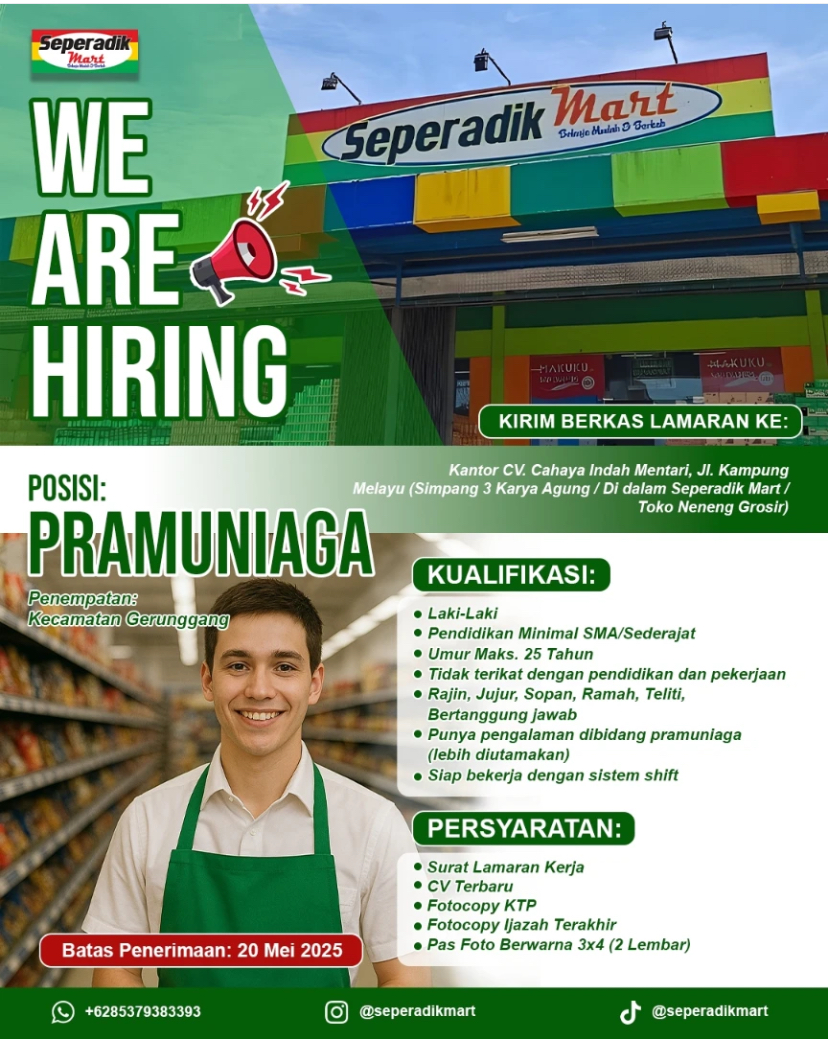 SEPERADIK MART membuka kesempatan kerja untuk posisi: