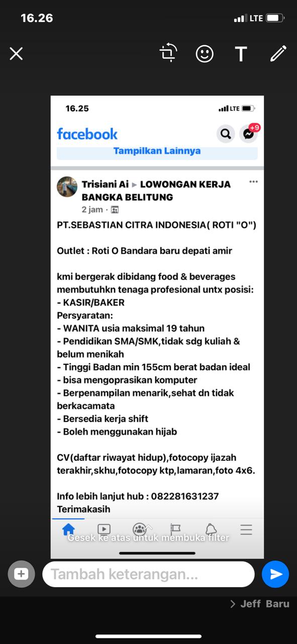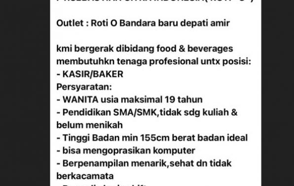 info Loker Kasir/Baker-Roti O @Bandara Pangkalpinang