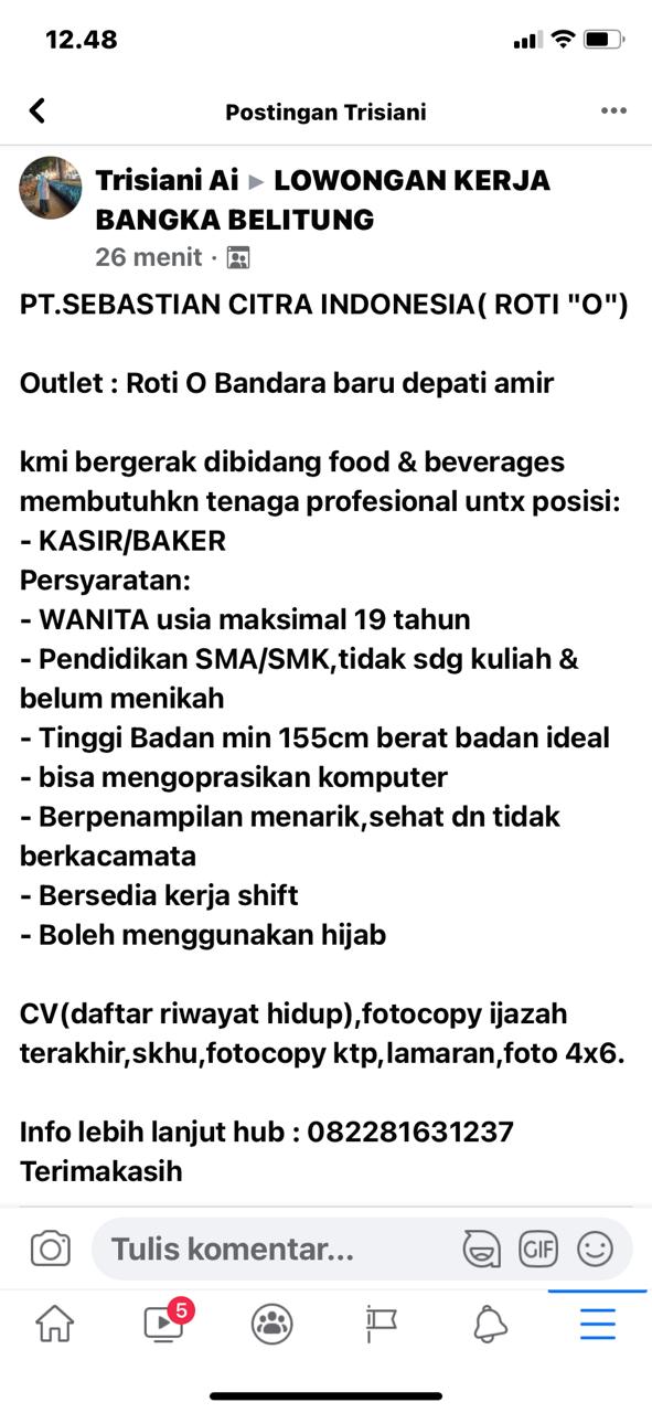 KASIR/BAKER @Roti'O Bandara Depati Amir