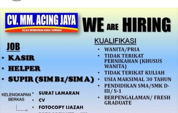 info Loker Kasir,Helper & Supir @MM.Acingjaya