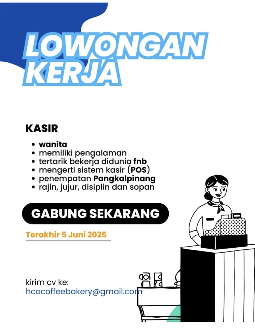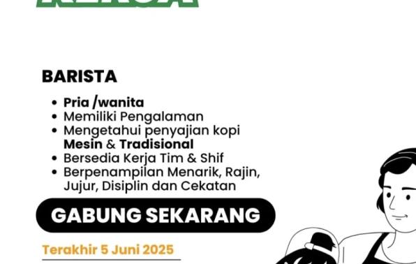 Coffee Bakery bergerak di bidang F&B membuka kesempatan kerja untuk posisi: