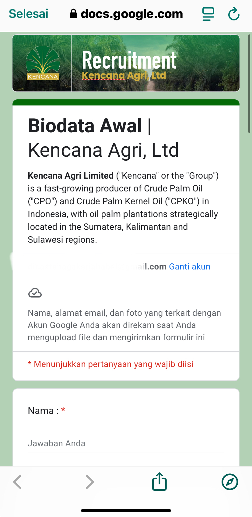 Linkedln : Recruitment Kencana Agri ltd
