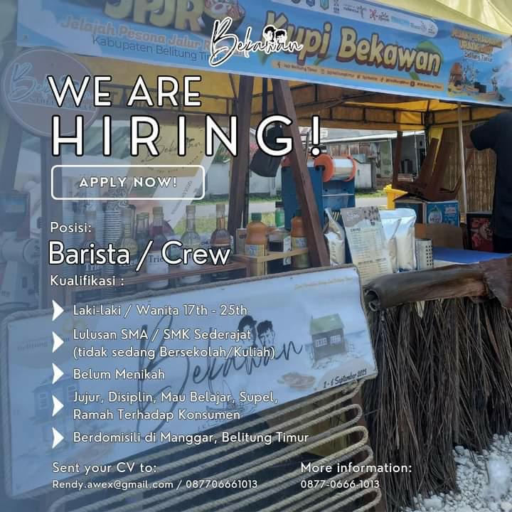 info Loker Kitchen Crew & barista/Crew-Kupi Bekawan-Manggar/Belitung Timur