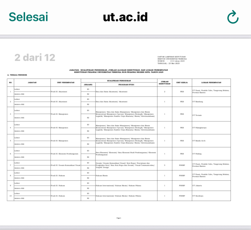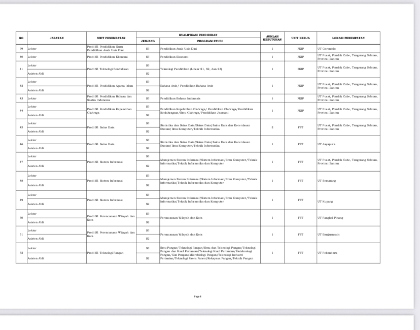 formasi : https://www.ut.ac.id/wp-content/uploads/2025/05/Lampiran-I-FORMASI-SELEKSI-Calon-PUT-NON-PNS-2025-LAMPIRAN-KEPTOR_.pdf
