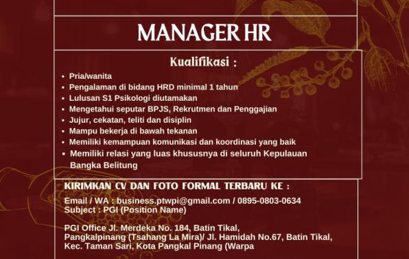 PAPA GROUP INDONESIA membuka kesempatan kerja untuk posisi Manager HR .