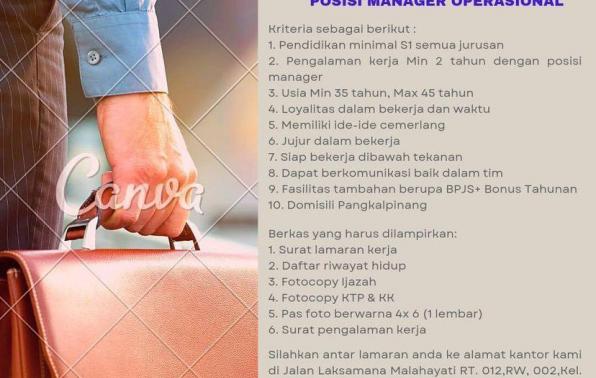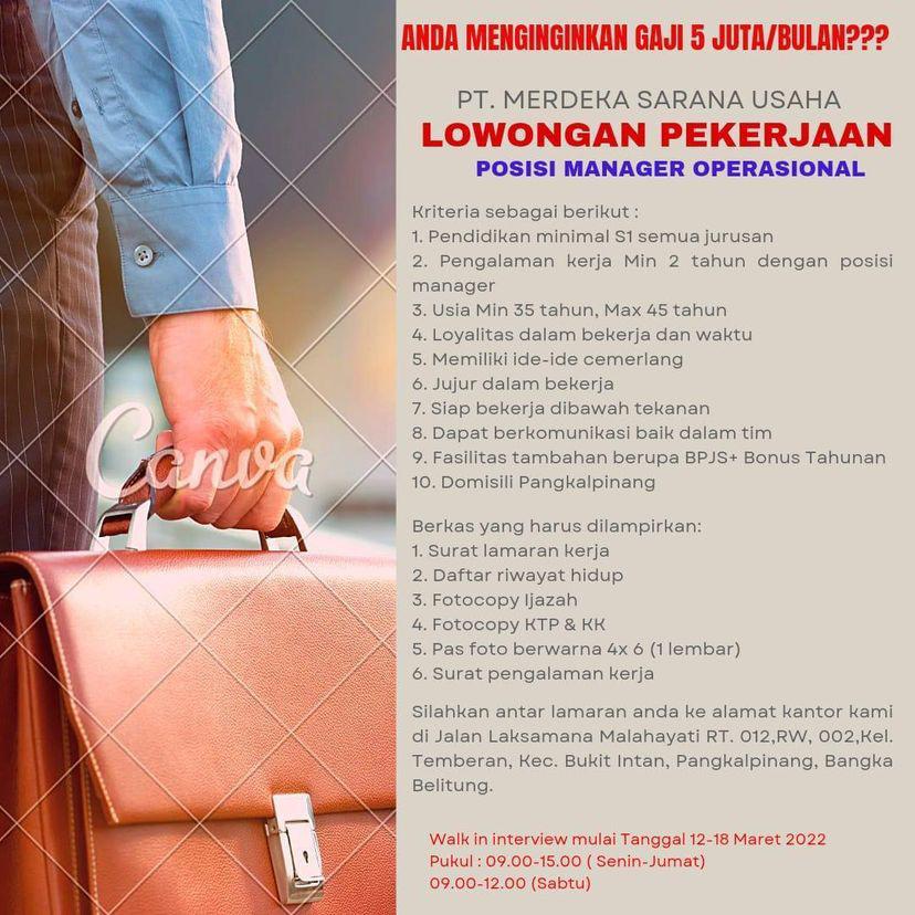 Manager Operasional-PT Merdeka Sarana Usaha-Pangkalpinang