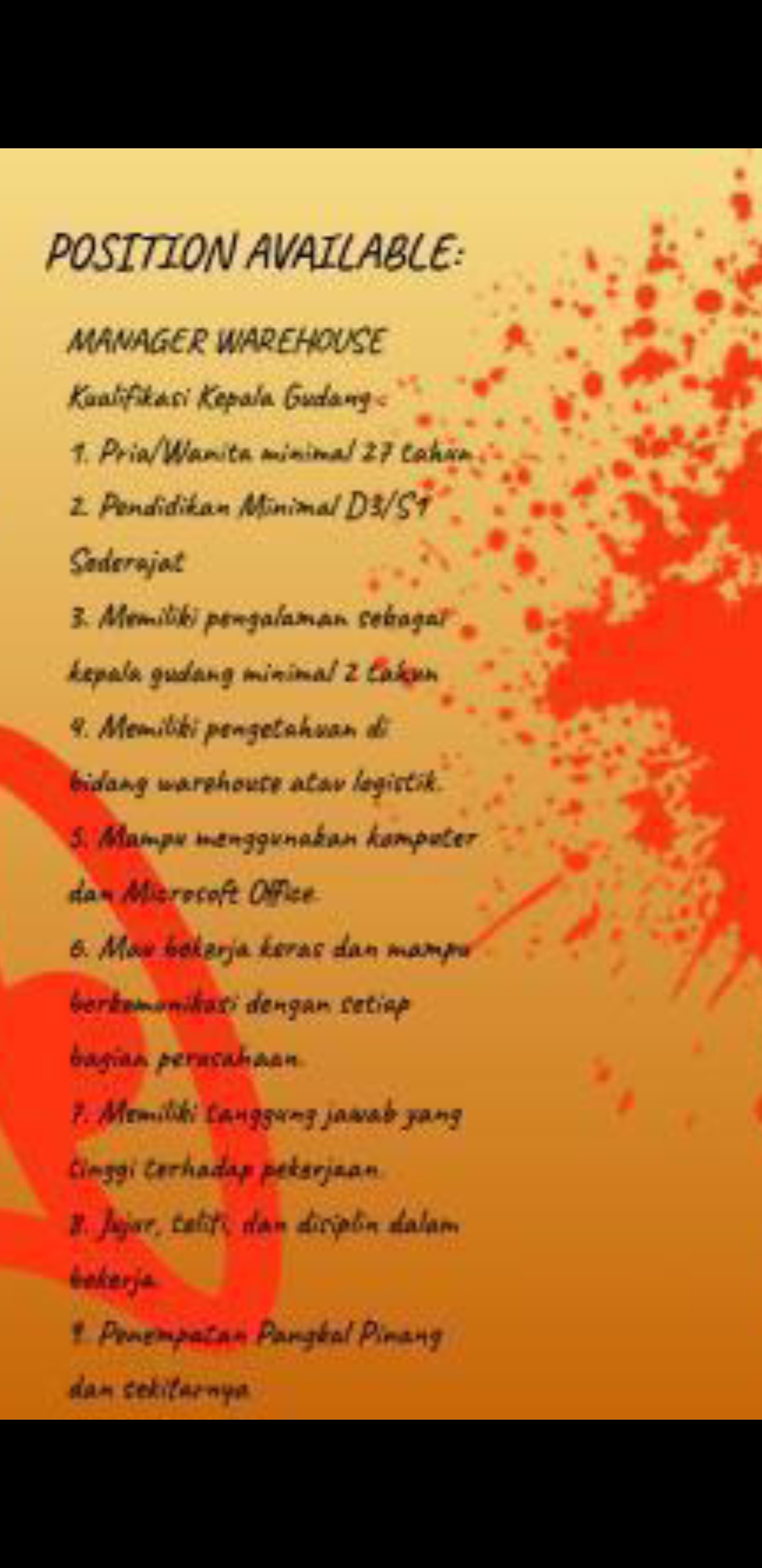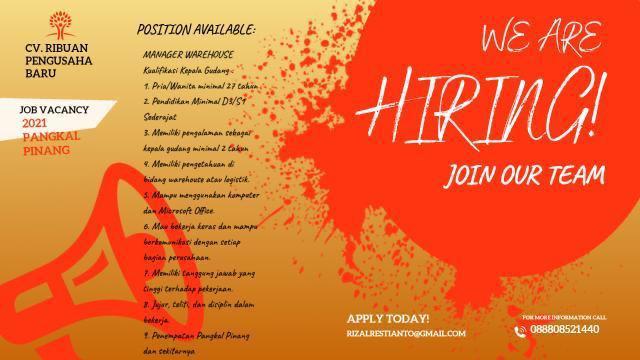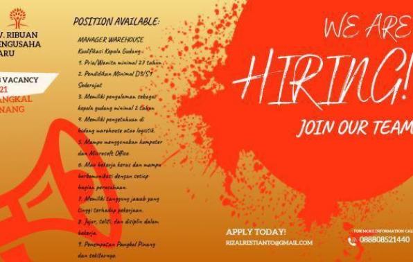 Manager Warehouse & Sales Canvaser @Pangkalpinang