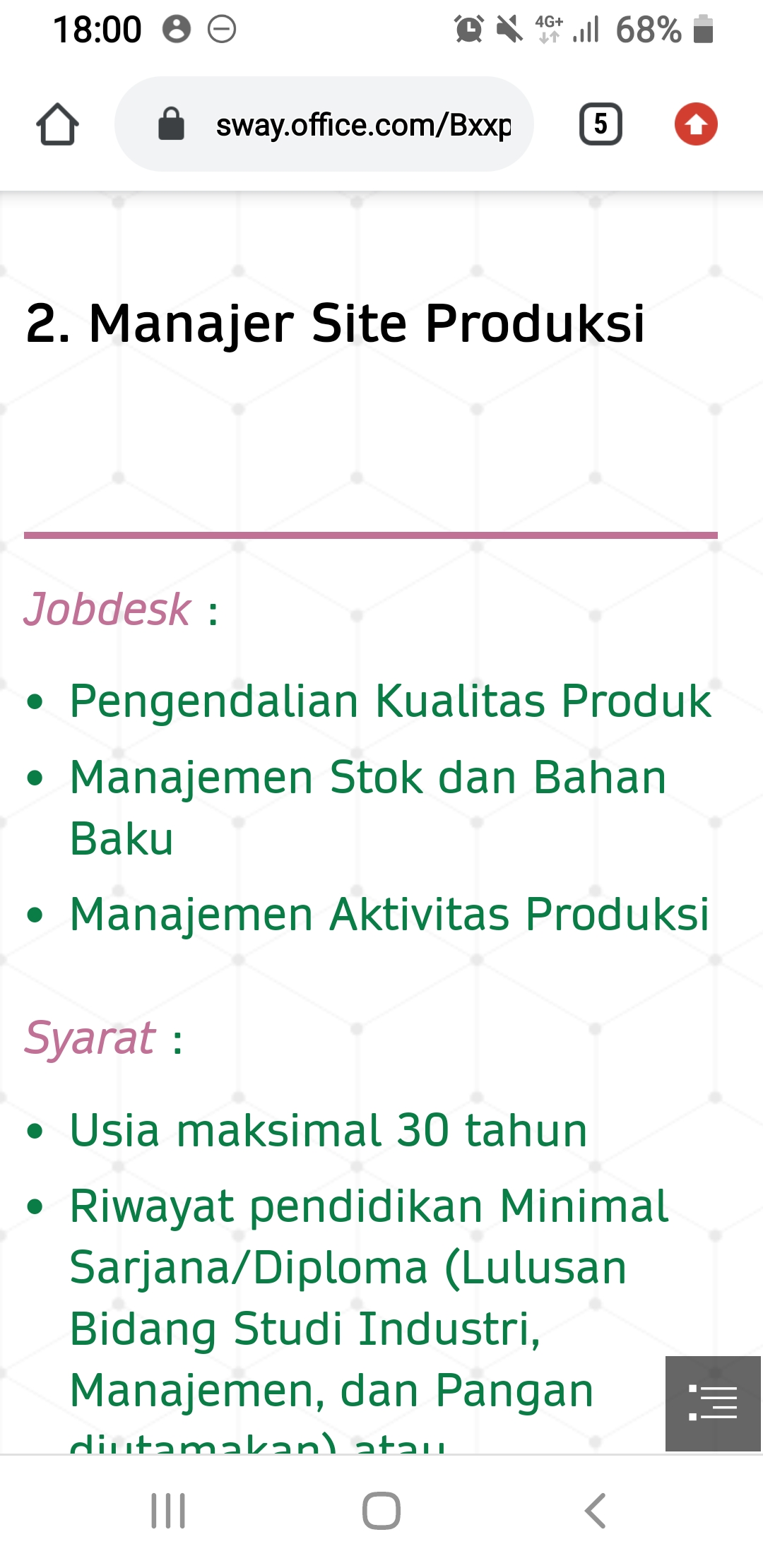 Manajer Site Produksi-Restoran @Pangkalpinang.
