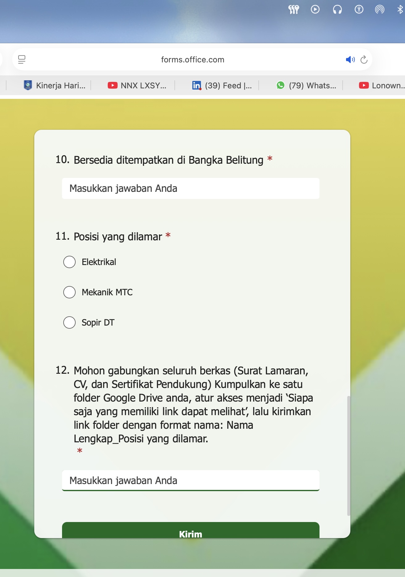Pendaftaran di LInk: https://forms.office.com/pages/responsepage.aspx?id=DQSIkWdsW0yxEjajBLZtrQAAAAAAAAAAAANAApxAf5NUQVVUWVZINkEwWTEwUEI3VkxTTkZDN0ZEQy4u&origin=lprLink&route=shorturl