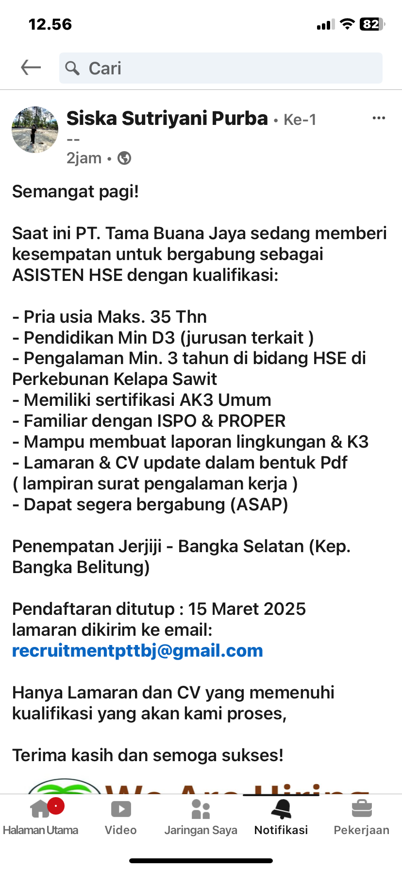 PT Tama Buana Jaya membuka kesempatan kerja untuk posisi: