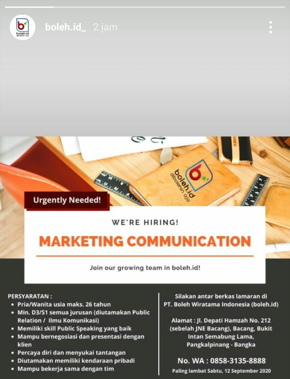 Membuka kesempatan bekerja untuk posisi MARKETING COMMUNICATION