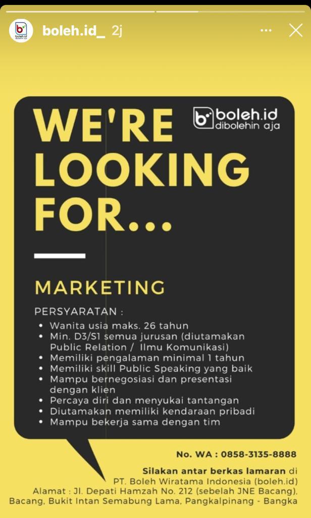 info Loker Marketing Produk UMKM @Pangkalpinang