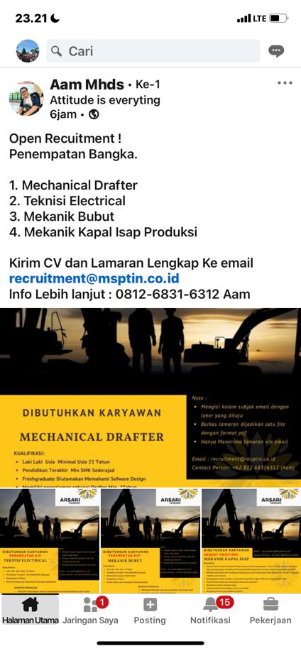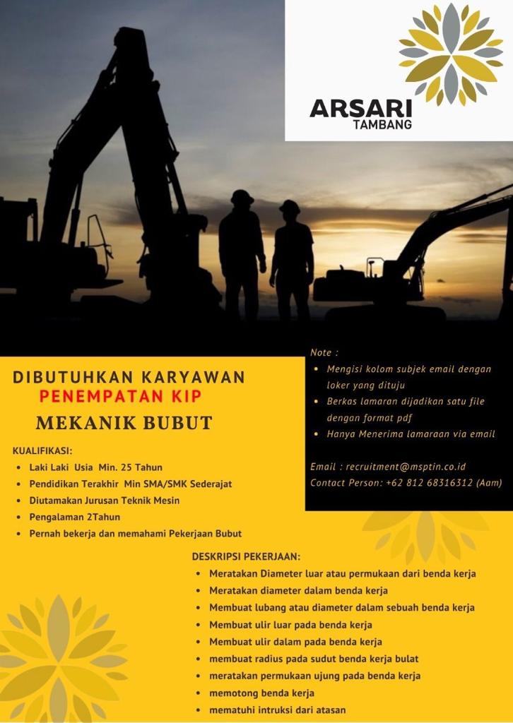 info Loker Mekanik Bubut-ARSARI TAMBANG-Bangka