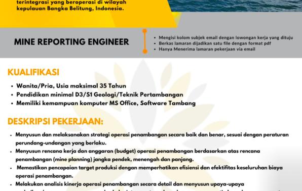 info Loker Mine Reporting Engineer-Arsari Tambang-Bangka