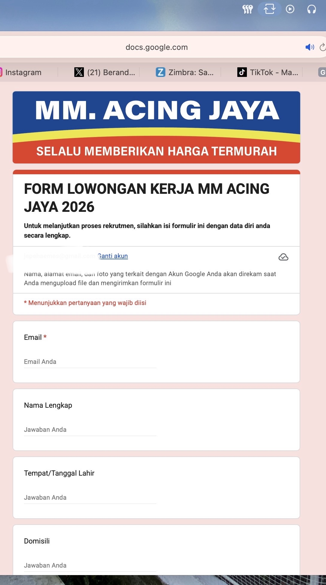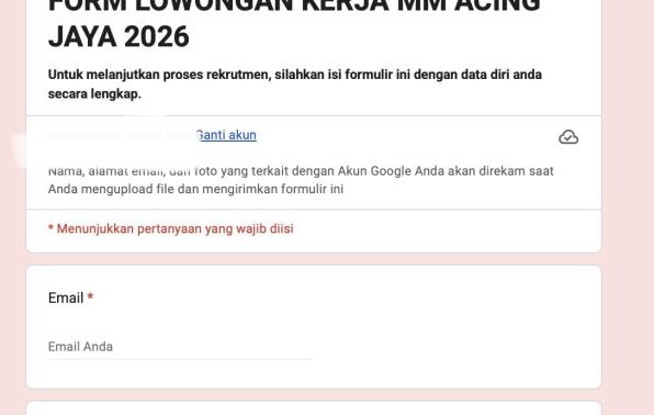 Pendaftaran di LinkĀ https://docs.google.com/forms/d/e/1FAIpQLSdbGVB4LgYKKlJE5d-fSgSEgqE6pSE1-U2g7N44kCt30wzcZQ/viewform