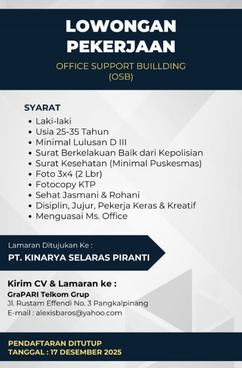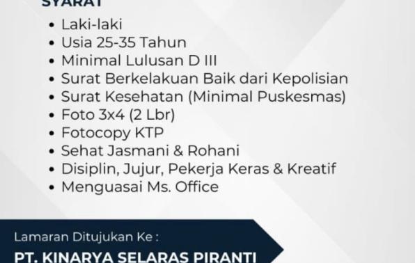 PT KINARYA SELARAS PIRANTI(Grapari Telkom Group) membuka kesempatan kerja untuk posisi :