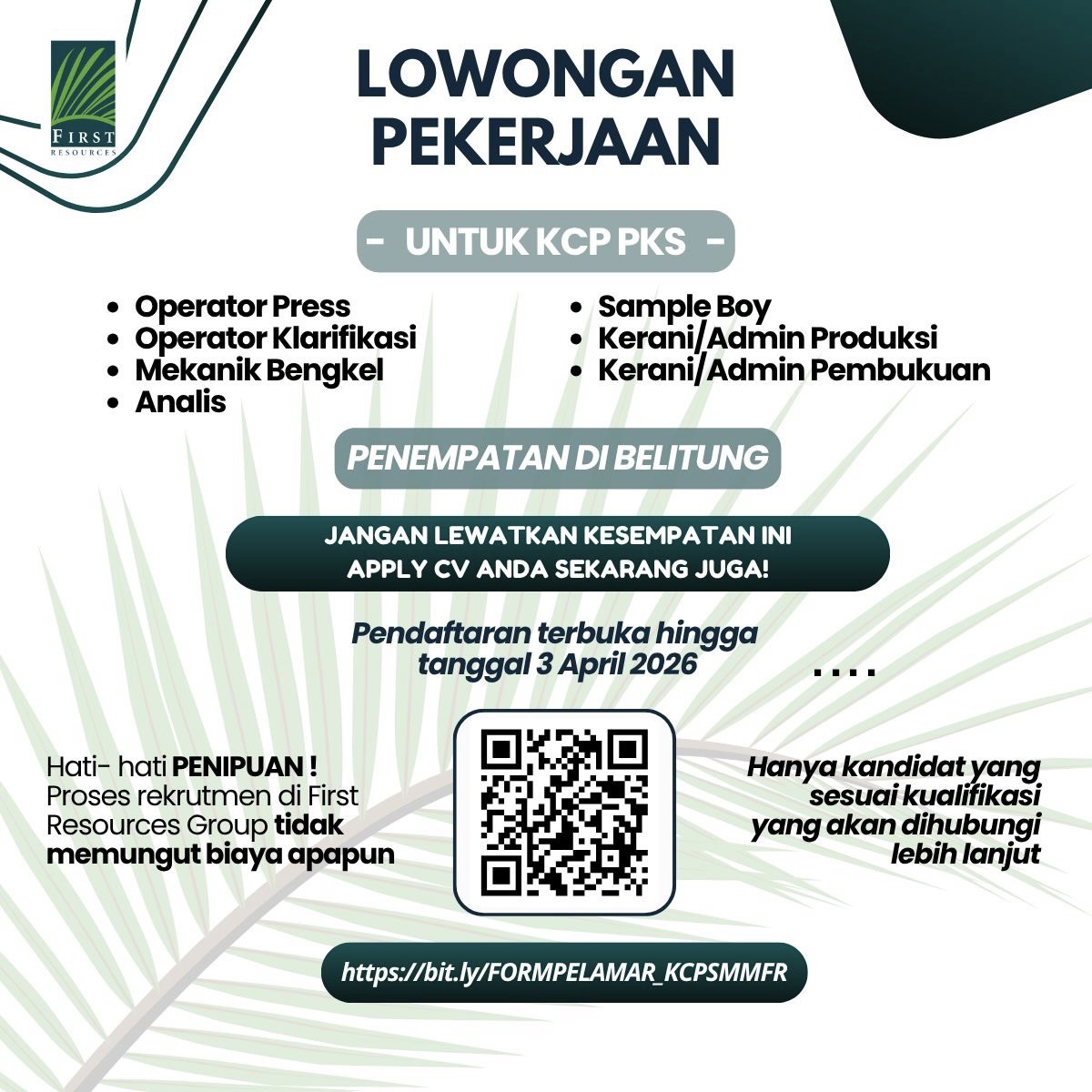Pendaftaran terbuka hingga tanggal 03 April 2026 di LinkĀ https://docs.google.com/forms/d/e/1FAIpQLSc5sfLJJGrSy7XpPLOCsdQr6K_I1IZ18KxDYgshl2h72ggx3Q/viewform